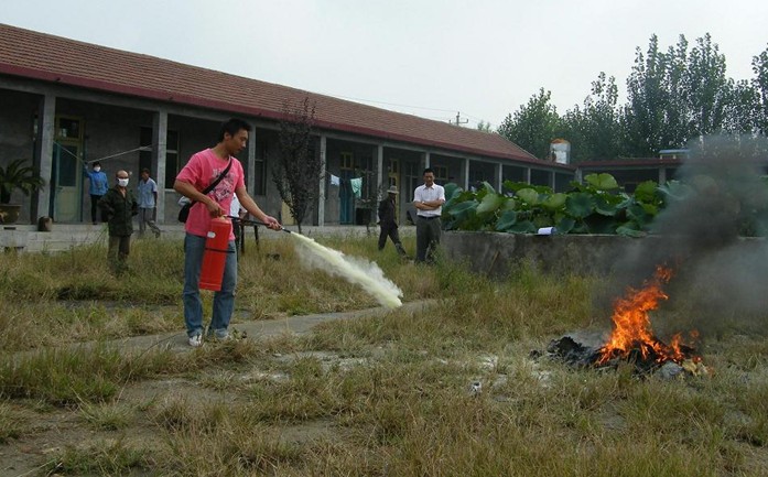參加此次演練的有生產(chǎn)副總鄭理、技術(shù)副總苗海濱、安環(huán)部負責人葛業(yè)成、保溫廠(chǎng)廠(chǎng)長(cháng)楊圣勇及其他相關(guān)工作人員。安環(huán)部主要負責人在現場(chǎng)給大家講解了如何識別滅火器的壓力表指示、如何識別滅火器有無(wú)過(guò)期等一些消防知識。參加人員依照演練程序,布置演練現場(chǎng),先示范滅火,再依次操作滅火,成功進(jìn)行了消防演練。